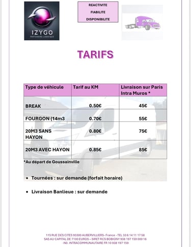 Transport de marchandises, location de véhicules avec ou sans chauffeur et lavage professionnel en Île-de-France.